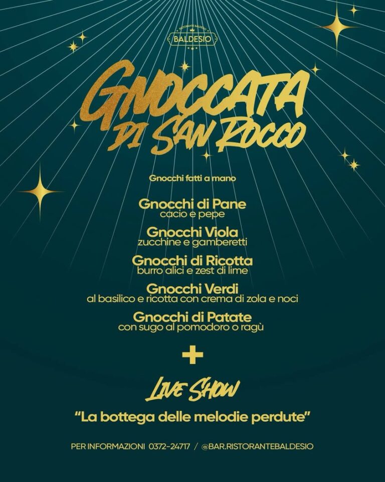 Sabato 16 agosto, alla Baldesio si rinnova la tradizione di San Rocco! Pranzo e cena con gnocchi fatti a mano in 5 versioni tutte da