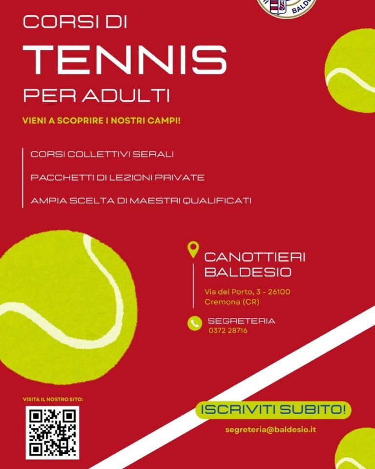Vuoi metterti in gioco? Alla Canottieri Baldesio partono i corsi di tennis per adulti! 👉 Lezioni collettive serali 👉 Pacchetti di lezioni private 👉 Maestri