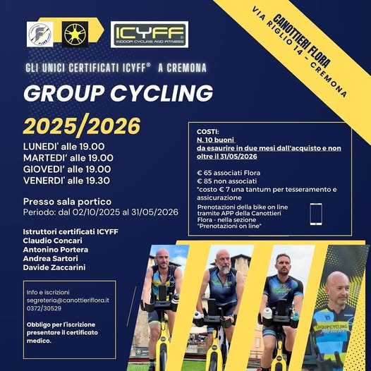 Da ottobre partono i nostri corsi fitness per tutta la stagione autunno/inverno 2025/2026 che si svolgeranno sotto il portico della Canottieri Flora: 👉 GROUP CYCLING,