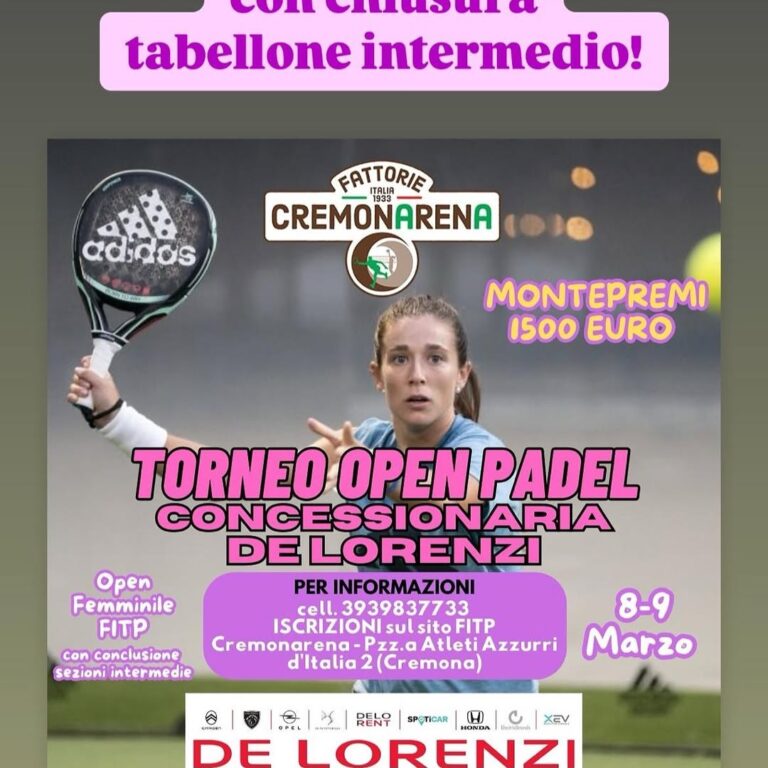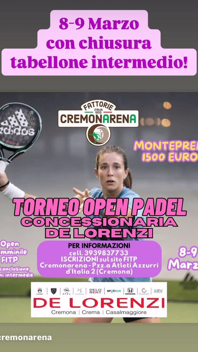 Super torneo in programma al Cremonarena e grande padel tutto al femminile! – Iscrizioni sul sito FITP! Grazie allo sponsor @concessionaria.delorenzi 🚀🚀🚀🎾🎾🎾 #cremonarena