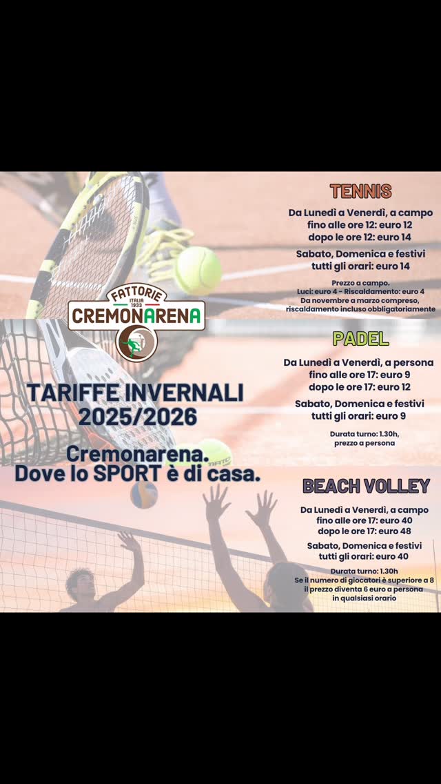 Cremonarena. Dove lo sport è di casa. Dal 1 ottobre. #cremonarena #padel #tennis #beachvolley #cremona