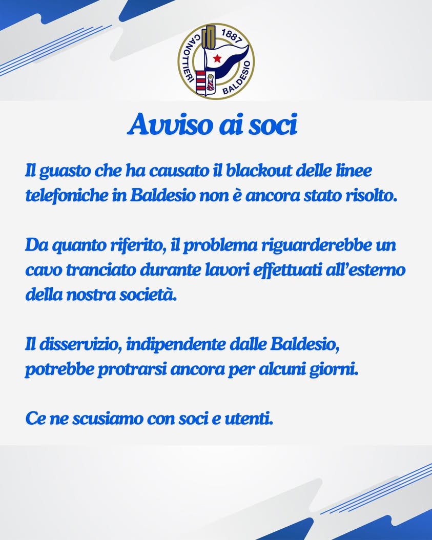 Il guasto che ha causato il blackout delle linee telefoniche in Baldesio non è ancora stato risolto.