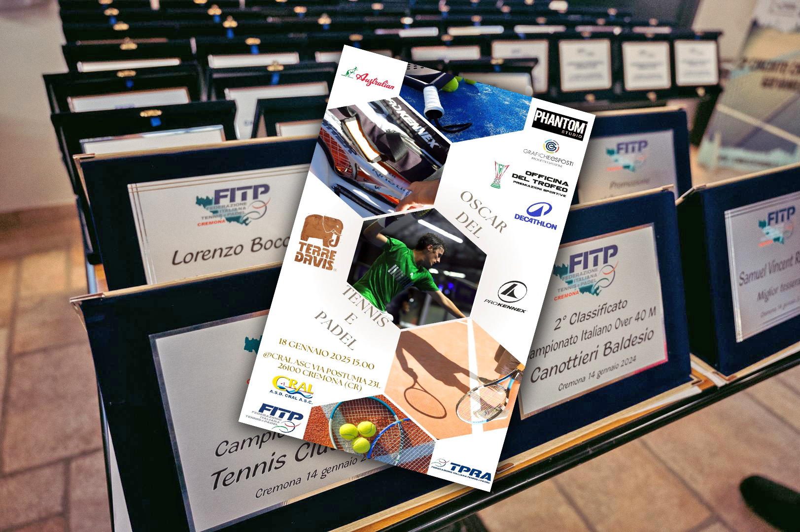 Sabato 18 gennaio 2025, a partire dalle ore 15, si terrà presso il Cral di Cremona in Via Postumia, il tanto atteso Oscar del Tennis e Padel Cremonese, un evento FITP speciale dedicato a celebrare i protagonisti della stagione agonistica 2024. Questa manifestazione, che in passato si è svolta allo Stradivari e alla Canottieri Baldesio, quest’anno cambia location ma accoglierà al meglio tutti i partecipanti e gli ospiti.